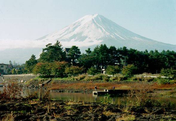 Ostatkami sił dotarliśmy do miasta Fujiyosida, gdzie zamierzaliśmy spędzić noc. Najpierw jednak trzeba było gdzieś zasięgnąć informacji. Zajęło to nam sporo czasu by w końcu dotrzeć na stację kolejową, gdzie znajdowało się biuro informacji turystycznej. O dziwo pani rozmawiała po angielsku. Dowiedzieliśmy się, że o tej porze (20 września) prawie wszystkie kempingi są zamknięte. Jest jeszcze jeden czynny: New Bridge Camping. Trzeba jednak jeszcze trochę popedałować nad jezioro Kawaguchiko. Po długich poszukiwaniach znaleźliśmy ten kemping. I tu spotkało nas małe zaskoczenie. Cały obiekt nie był oświetlony i nie zauważyliśmy żadnego namiotu. Coś tu nie gra - pomyślałem. Później okazało się, że to już nie sezon na nocowanie pod namiotem - tak przynajmniej uważali Japończycy. Stwierdziliśmy jednak, że tę noc spędzimy w innym miejscu - nad brzegiem jeziora. Była to najgorsza noc jaką spędziłem w Japonii. Położyliśmy się w takim miejscu, że przez całą noc, co chwila ktoś przechodził koło nas i nas budził. Dopiero nad ranem zauważyliśmy, że w pobliżu moczy kije wielu wędkarzy, a my położyliśmy się na ich ścieżce do WC.