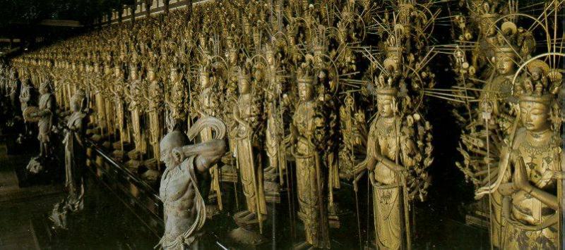 W religii buddyjskiej Kannon uznawany jest za bodhisatwę - bóstwo, które wyrzekło się nirwany, by pomagać ludziom ją osiągnąć. Największy posąg położony jest na środku hali, pomiędzy dwoma pięćsetkami mniejszych figur. Ciekawostką jest to, że każdy Kannon ma 40 rąk a nie 1000, jak wynikałoby z nazwy. Według buddyjskiej formuły 40 rąk równa się 1000, gdyż każda zawiera 25 światów.