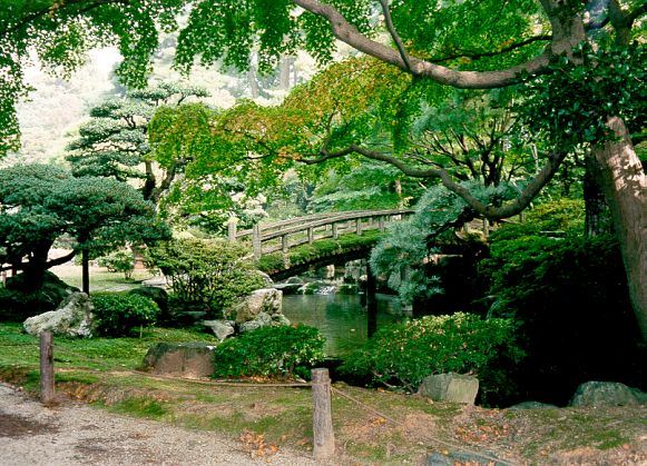 Typowy przykład świątyni Zen. Starannie zaplanowany ogród, dający złudzenie naturalnego nieładu, a jednocześnie za każdym zaukiem szokujący nowymi pejzażami. Błoga cisza zmącona tylko szumem wodospadu. Chciałoby się tu zostać na wieczność. W jednym z budynków co godzina odbywa się ceremonia herbaty. Od wielu lat pragnąłem zobaczyć to na własne oczy. Byłem jednak trochę rozczarowany, gdyż trwała ona tylko 20 minut, a nie jak się spodziewałem - godzinę. Zrobiono tak zapewne, gdyż rzadko kto ma tyle czasu na oderwanie się od rzeczywistości. Wielka szkoda. Ceremonia jednak była ciekawa. Na początku gość witany jest przez gospodarzy - w tym przypadku dwie Japonki ubrane w kimona. Częstuje się go ciastkiem, a w tym czasie jedna z pań przygotowuje herbatę. Każdy ruch jest starannie wypracowany i wyważony. To swoiste przedstawienie.