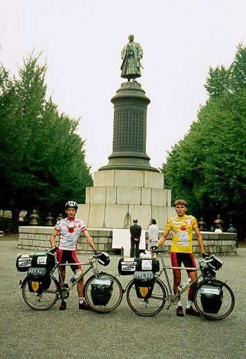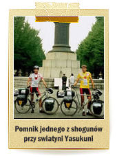 Lot był dla mnie bardzo męczący, bo nie mogłem zasnąć. Po dziewięciu i pół godzinach od startu wylądowaliśmy na lotnisku w Narita, około 60 kilometrów od centrum Tokio. Podczas kontroli paszportowej spotkało nas małe zaskoczenie. Japończycy nie chcą nas wpuścić tam gdzie powinni. O co chodzi? - pytam się - przecież mamy wizy. Na to celnik łamanym angielskim odpowiada, że na karcie wjazdowej nie podaliśmy miejsca noclegu. A skąd ja mogłem wiedzieć gdzie dane nam będzie spędzić noc? Żebym wiedział, że to takie ważne gdzie się śpi, to bym napisał cokolwiek. Tłumaczę celnikowi, że to jest wyprawa rowerowa itd., itd., ale widać, że trafiłem na opornego zawodnika. Żąda ode mnie programu wyprawy i Bóg jeden wie czego jeszcze chce. Na końcu kazał pokazać ile mamy pieniędzy. Zamachałem mu przed nosem plikiem studolarówek i zaraz się odblokował. Całe zajście trwało ponad pół godziny.