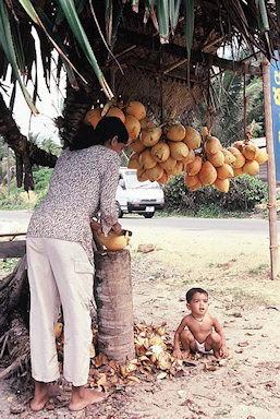 Przy nadmorskiej drodze zawsze znajdzie się miejsce gdzie można napić się soku z kokosa.