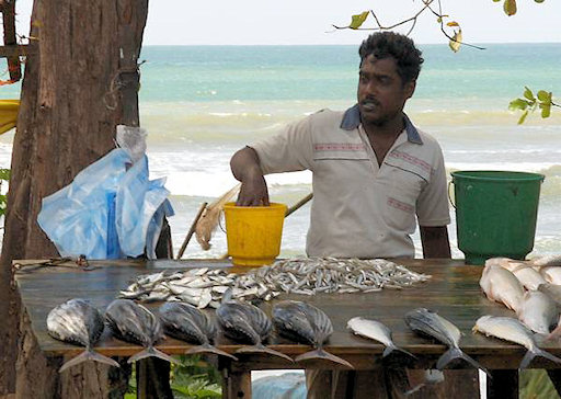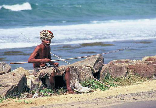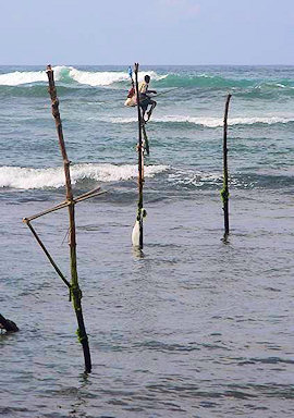 Jeden najbardziej znanych widoków ze Sri Lanki – wędkarz na tyczce. Ale ten sposób wędkowania występuje tylko w okolicach Unawatuna.