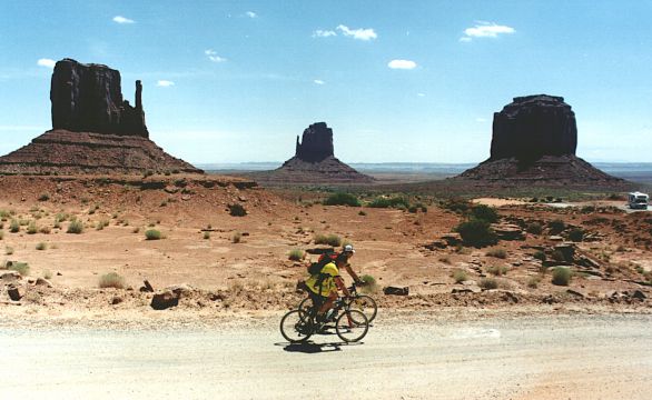 Następnego dnia spakowaliśmy się i wyjechaliśmy z Wielkiego Kanionu. Nic tu po nas. Nie można jeździć rowerami, to nie ma zabawy. Dotarliśmy do Doliny Monumentów. Ze względu na specyficzny krajobraz nakręcono tu dziesiątki westernów. Urok tego miejsca przyciąga wielu turystów, ale nie na rowerach. Całe szczęście, że można jednak zwiedzać dolinę na bikach. Co prawda do dyspozycji jest tylko 20-kilometrowa pętla, ale przy temperaturze przekraczającej 40 stopni w cieniu i tak nie chce się za dużo jeździć. O Dolinie Monumentów można powiedzieć jedno: miejsce niezwykłe.