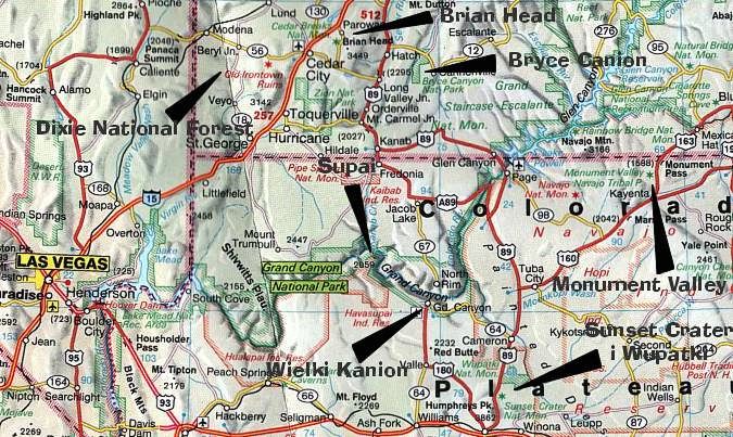 Zobaczyliśmy Dolinę Monumentów i Bryce Canion, który dla mnie jest jednym z cudów świata. Zrobiliśmy wreszcie kilka wycieczek w okolicach Wielkiego Kanionu. Na jednej z nich dojechanie do naszego samochodu okazało się ponad nasze siły, na innej fiknąłem takiego koziołka, że tylko cud jakiś spowodował, że skończyło się tylko na zdartej skórze na opuszku palca. To tylko kilka przykładów na to, że przez cały wyjazd nie opuszczał nas pech...