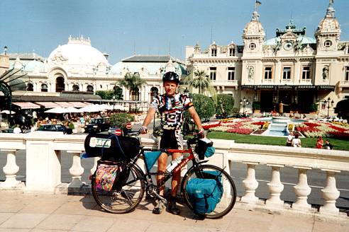 Nadbrzeżną promenadą jadę do Monako, ale droga nie jest wcale taka łatwa. Jest tu trochę podjazdów. A do tego temperatura w słońcu wynosi 50 0C! Dochodzi jeszcze spora wilgotność powietrza, więc oddycha się ciężko. Wypijam litry „Isostaru”, by ugasić nieustające pragnienie. W końcu docieram do Monako - punktu zwrotnego mojej wyprawy. Przepiękne miasto. Niesamowite tunele i port, w którym cumują ekskluzywne "łajby".