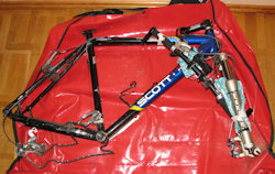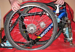 Poniżej zdjęcia przedstawiające etapy składania roweru do przewożenia go w torbie.